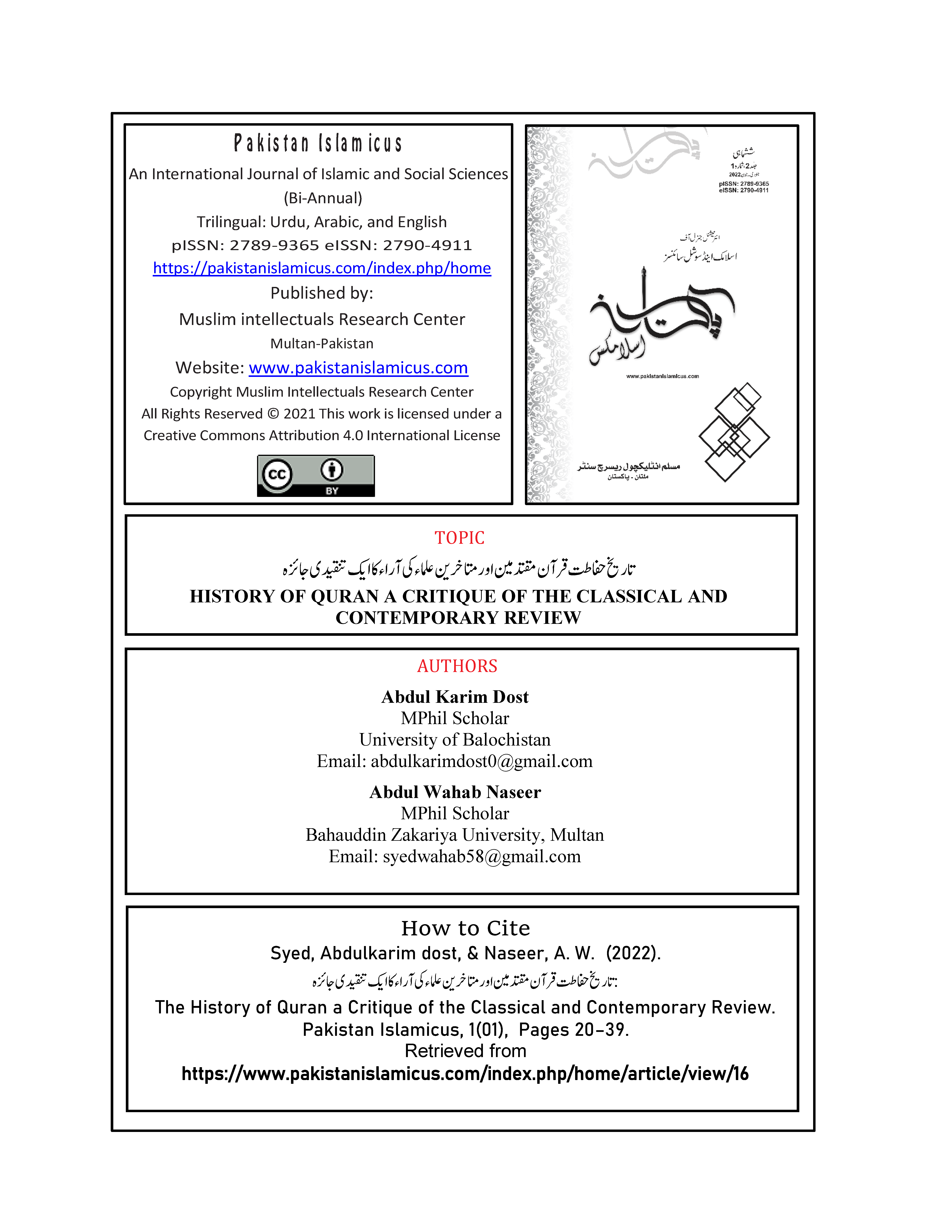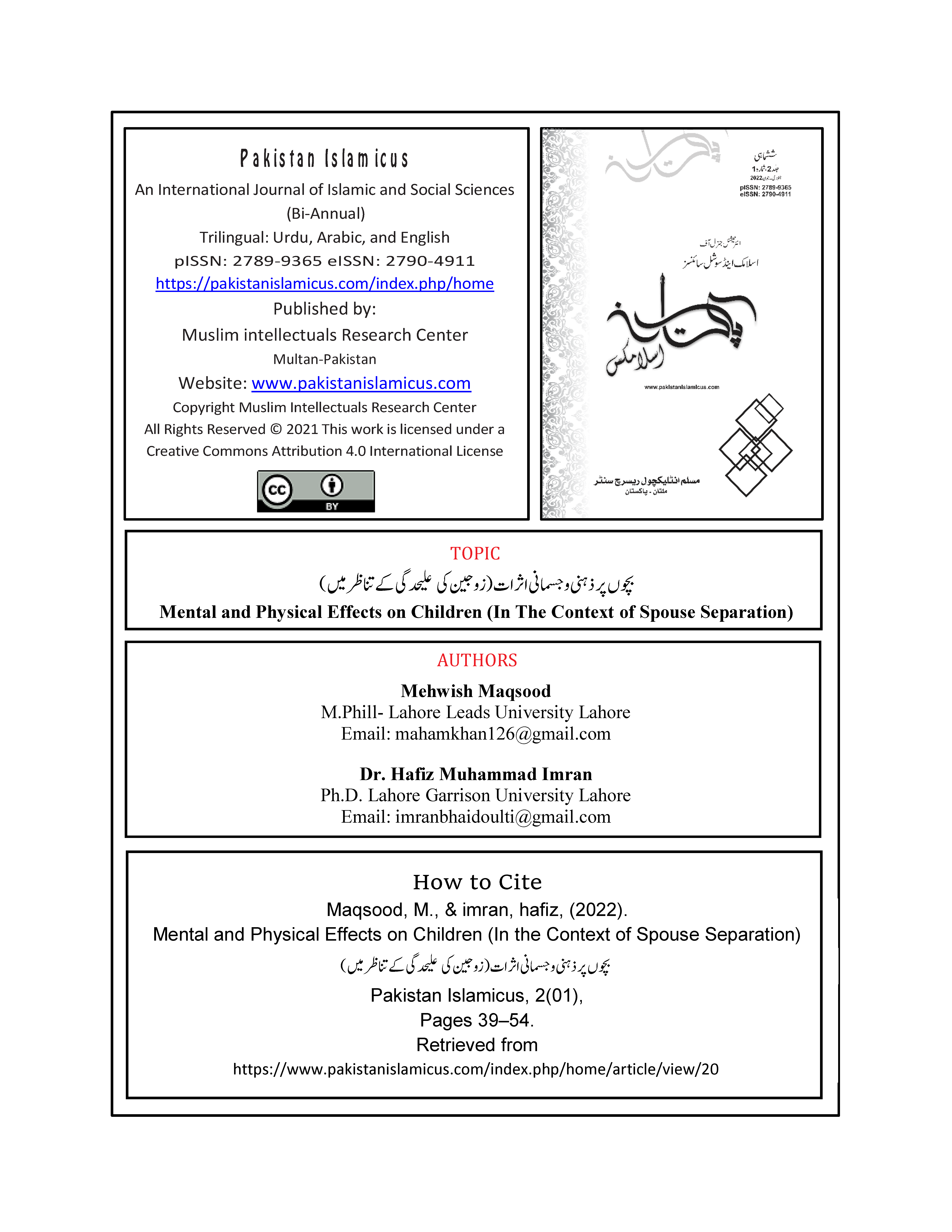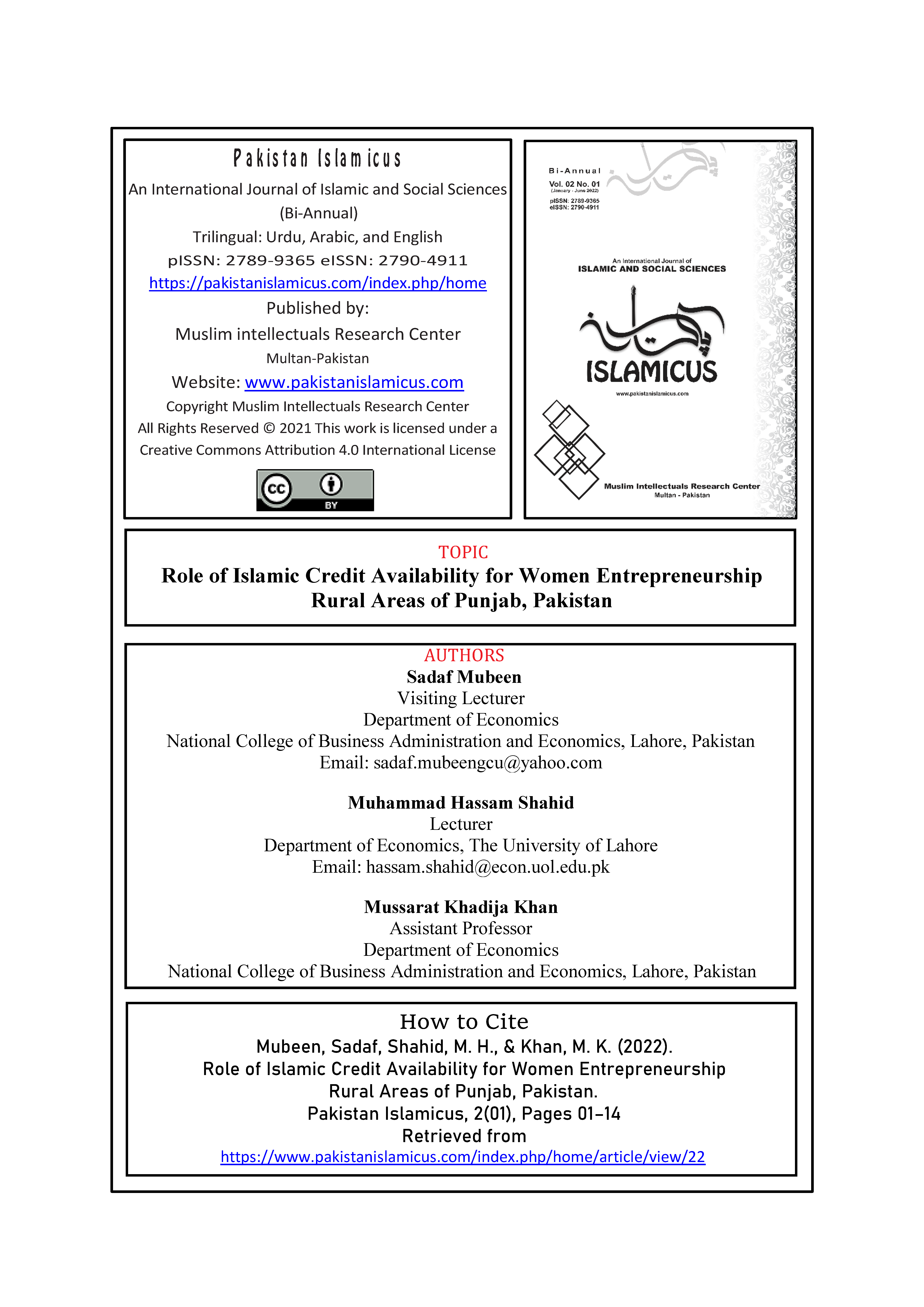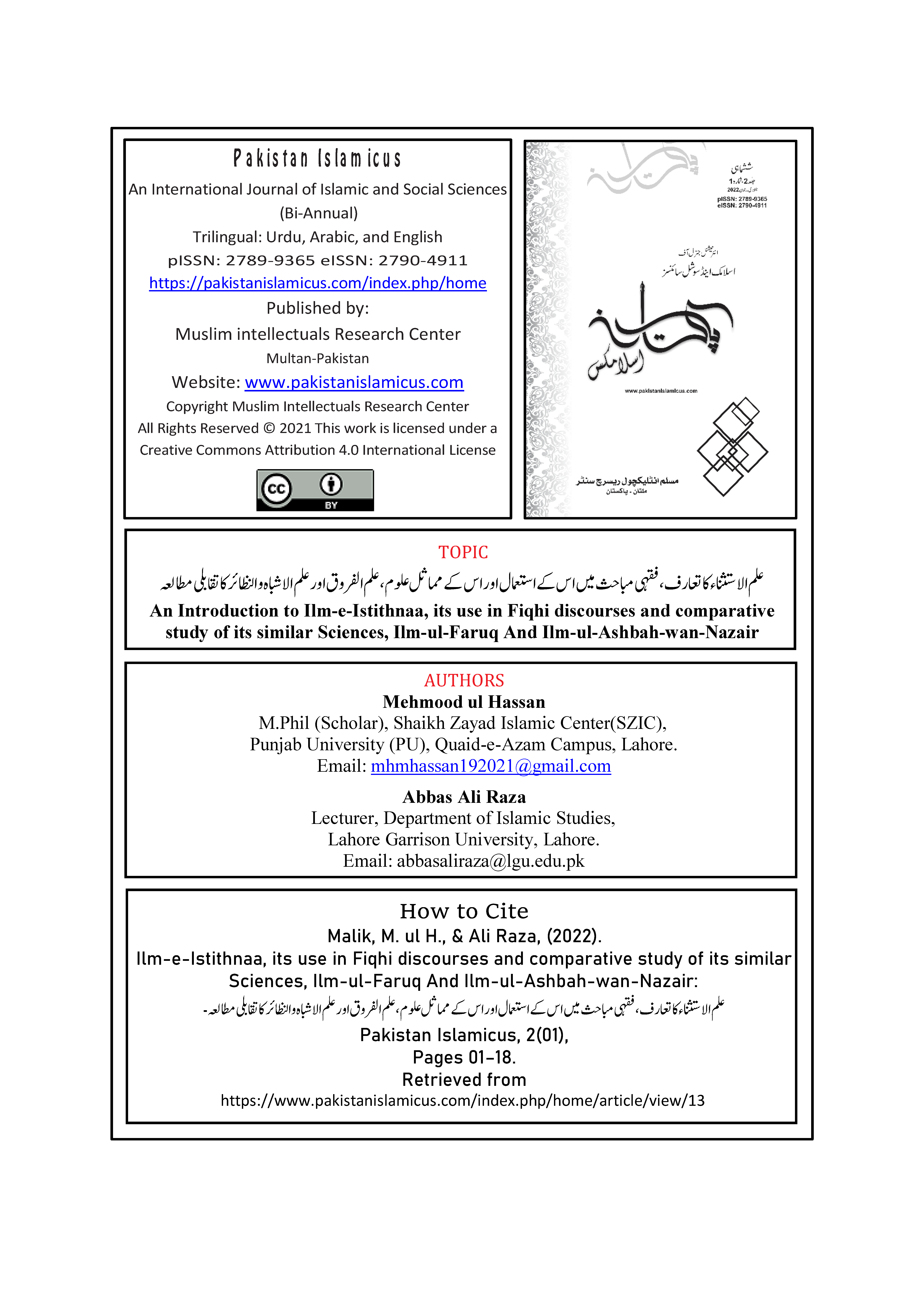 Vol. 2 No. 01 (2022): January - June. PAKISTAN ISLAMICUS